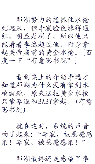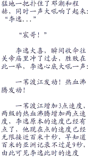 邓潮的武器实在太厉害了,几乎是沾着就死,雨伞在手,至少可以抵挡一段时间。