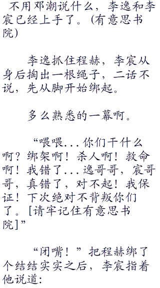 邓潮还没说话,一旁的程赫就叫了起来:“对!死叛徒!狠狠地教训他!”