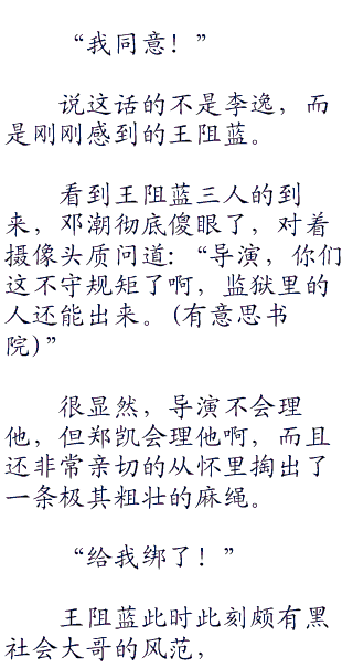 “少废话!拿水盆设陷阱的时候你怎么不说是节目组迫害你的?用水枪追得我们到处跑得时候怎么不说是节目组迫害你的?你这个叛徒,今天一定要好好收拾你,看你以后还敢不敢背叛我们了。”