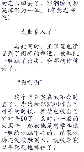 可惜李逸三人此刻是坐在岸上的,灵活程度比邓潮他们高多了,面对气势汹汹的邓潮,李逸一个飞脚,正中邓潮那张并不帅气的脸庞。
