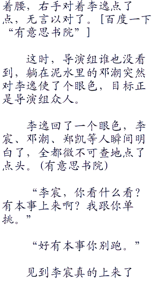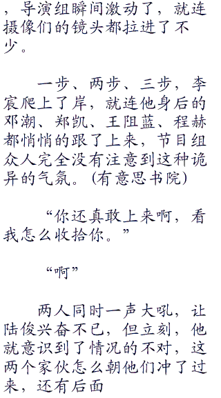 很显然,导演组不会理他,于是邓潮发狠了:“要用抢的是吧,好”说完就扑向了李逸等人。