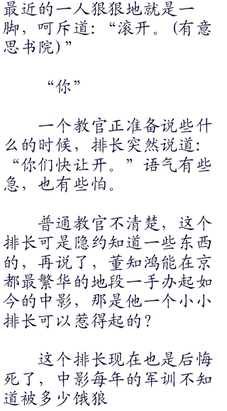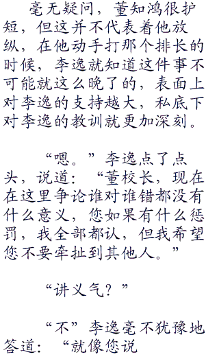 董知鸿一步一步慢慢靠近教官圈,其中一个教官面色略微有些尴尬,走进董知鸿,说道:“董校长,你们的学生实在太过分了,居然敢动手打教官,必须得开除,他们”