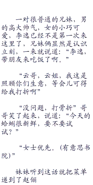 一个人怎么办?凉拌呗但不管怎么样,饭还是要吃的啊,全校放假,食堂里肯定是没有饭了的,于是李逸换好衣服,转身就出门了。