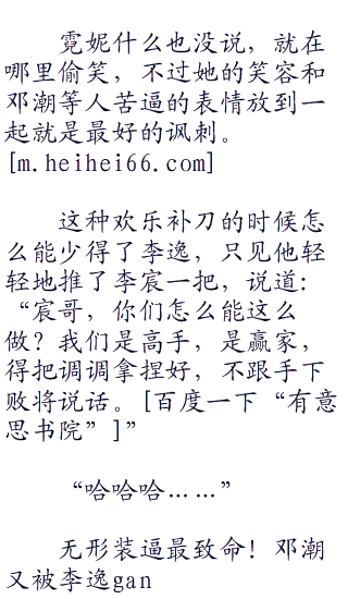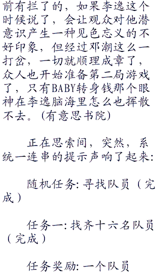 李逸向邓潮投去了一个感谢的目光,baby这幅做派,李逸肯定是不好意思不说的,但李宸他们之