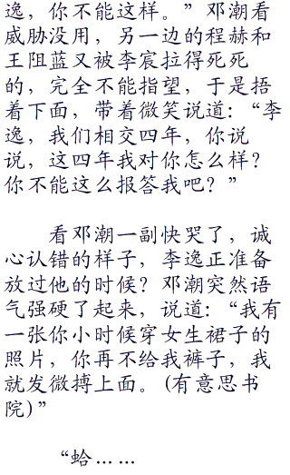 而另一边,李逸望着邓潮的眼神彻底变味了,然后把李宸等人围到了一起,说了一番话。