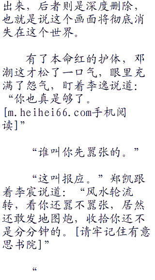 其实邓潮内心想说的是:“李逸,你给我记住了,君子报仇,十年不晚!下次你别给我逮着机会了,不然我肯定要你好看。”