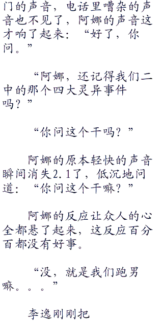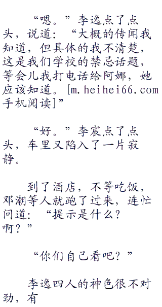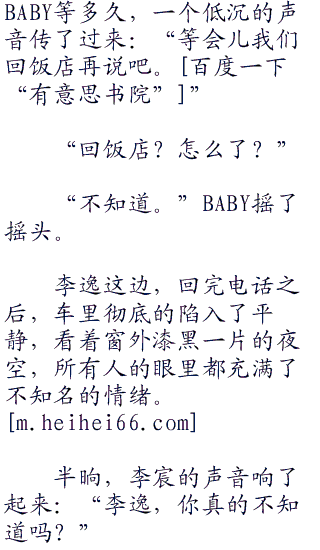 车子行驶在路上,没等李逸打开提示,baby的电话就来了,内容自然是要提示了。