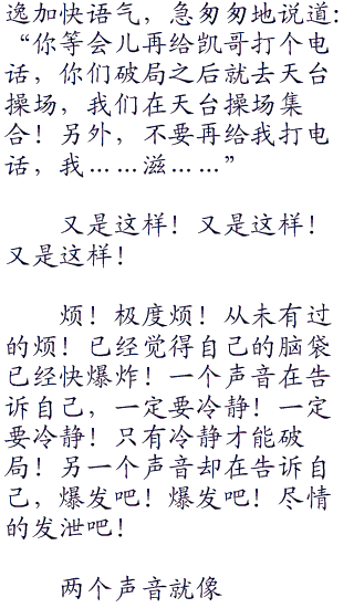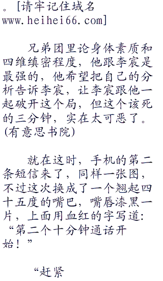 这就是李宸进入这个地方的感觉,特别是在接到那张血腥图片之后,就更加不舒服了。