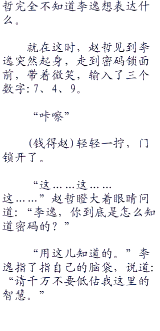 三个单词李逸全都明白,但合在一起就完全搞不懂是什么意思了,而且密码是三个数字,和这三个英文单词有半毛钱关系吗?