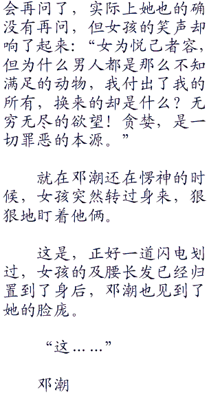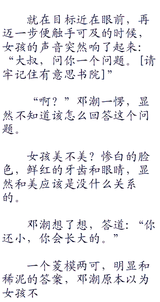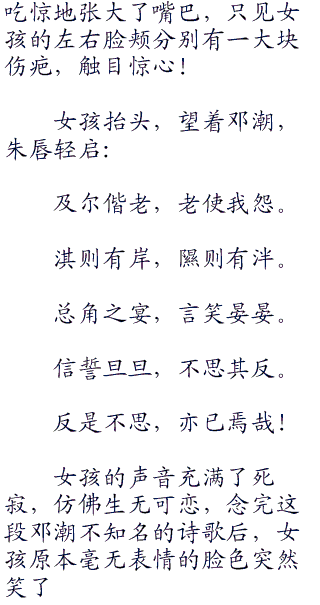 曾经,这个念头在邓潮脑海中出现过,他也曾对女孩的解释有很多疑惑的地方,但立刻就被马上就能逃出这里的喜悦掩盖了,然而,他很快就为自己的这个决定后悔了,悔到肠子都青了。