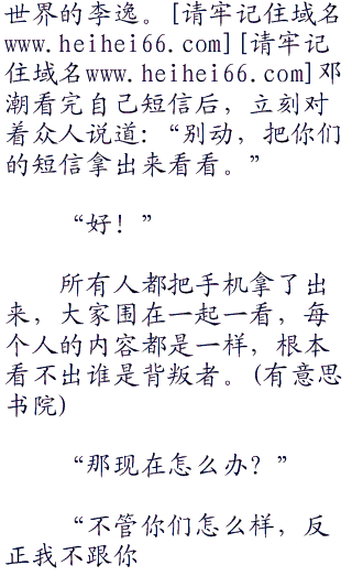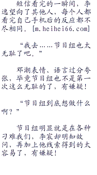 李逸拿起来一看,是一条短信:首先,恭喜你们成功活到了现在!但我有一个不好的消息告诉你们,你们当中已经有人被鬼气感染,变成了厉鬼,他/她/它带来了死亡!如果不想命丧如此,就迈动你的双腿,努力向前狂奔!