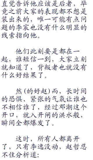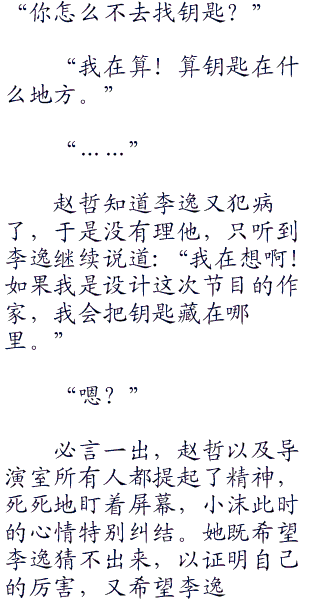 这个字可以代表在场所有人的心声,为了迷惑他们,这个第一人称还故意使用了他/她/它三个称谓,节目组这次的安排真可谓滴水不漏。