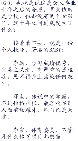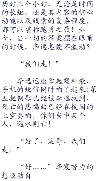 李逸正在检查水龙头的时候,一抬头,通过镜子,看到微弱的灯光反射在赵哲的脸上,使得他的脸若影若现的,看起来异常恐怖,吓得他差点一拳头砸了过去。