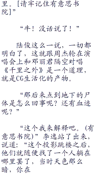 陆俊向兄弟团众人望了望,每一个人说话,于是开口解释道:“其实那不是一个人,是我们根据实体提前做好的一个cg模型,那就是从对面大楼过来的一个投影。”