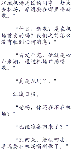 “通过机场广播唱歌,李逸也是真会玩。”