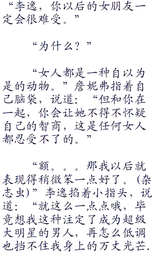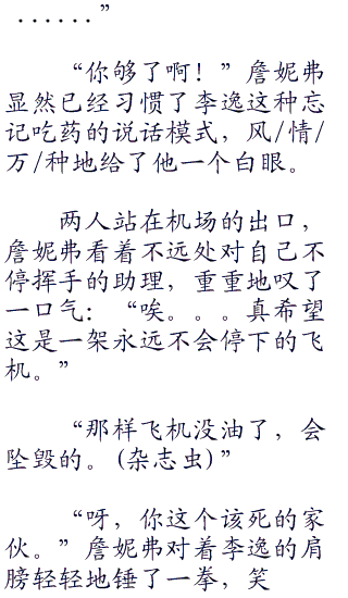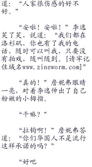 “啊!”李逸叫了两声詹妮弗才反应过来,回了回神,双手在空中乱舞,连续叫了六声“oh—my—god!”弄得李逸一愣一愣的。