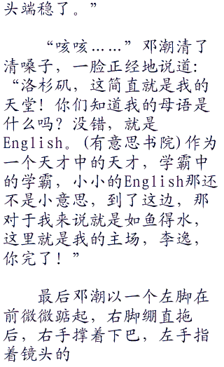 “这对没吃药的兄弟实在太神经了,作为一个正常人,特别是一个高智商、高颜值的正常人,待在他们中间实在太危险了。”邓潮又把镜头对准了baby问道:“一直想问你,上次死亡高校那期被李逸撕了之后你有什么感想?”