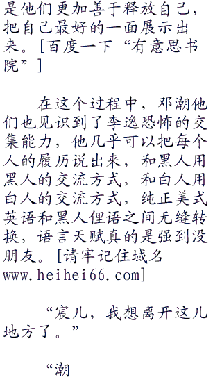 之后,李逸就带着邓潮他们在节目组里开始四处乱逛,把剧组主要的工作人员都介绍给他们认识,大家知道是李逸在华国录制的综艺节目之后也很开心,纷纷踊跃上镜,美国人最大的区别就
