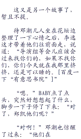 邓潮的动作提醒了baby和李宸,他们赶紧松开安全带,往车下跑,生怕李逸带着他们