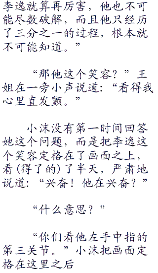 面对李逸这种厚颜无耻的行为,邓潮三人唯有竖起来自己的中指来表示自己对李逸的敬(bi)佩(shi)之情!