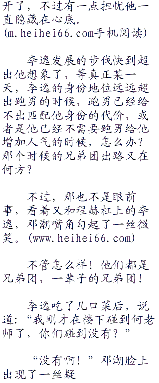 李逸知道邓潮担心的是他的根基不稳,再加上所有事都累积到一起,邓潮怕就是崩了。