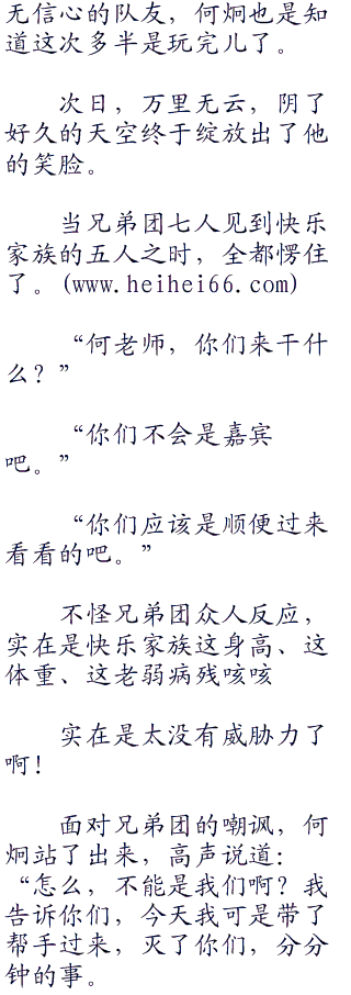 “喂喂!你们够了啊!我们必须要鼓起斗志,这次我们快乐家族对兄弟团,是我们的荣誉之战,必须要成功。”