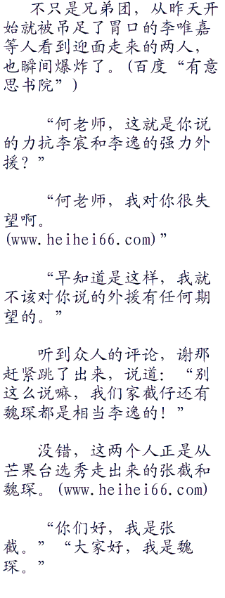 “我也想成功啊!”李唯嘉摊了摊手说道:“可是我完全找不到胜利的理由啊。”
