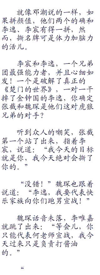 “你们放心,这两个人我都找了外援对付。”何炯神秘兮兮地笑道:“这两个人绝对是我们的强力外援,我想了想,他们干掉李逸和李宸是完全不成问题的。”