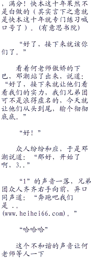 双方打完招呼之后,邓潮拍了拍手掌,说道:“好了,我们来喊喊我们的口号吧。”