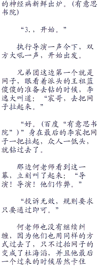 伟大而善良的执行导演面对众人的吐槽,依旧淡定的吩咐其他人把绳子绑在了众人的腰上,然后比赛开始。