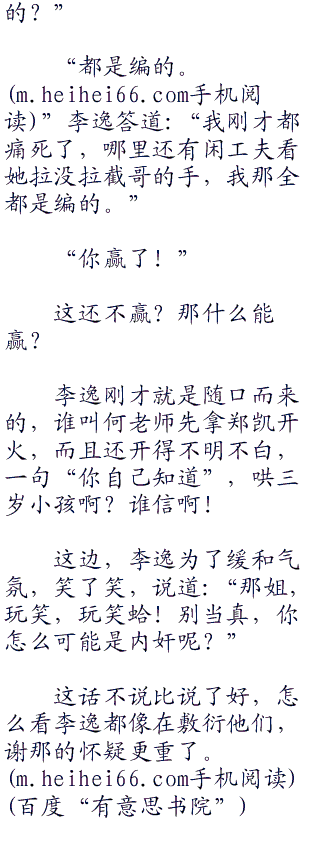 郑凯正准备解释的时候,李逸突然拉住了他,朝何老师说道:“郑凯是不是内奸我不知道,但我知道那姐和截哥绝对有问题。”