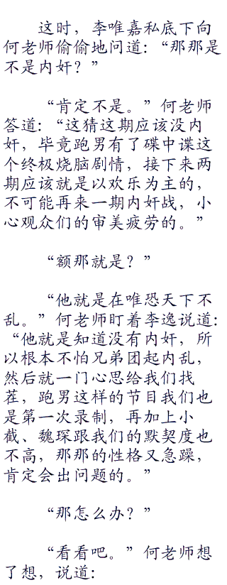 有理有据,李逸的这番分析让导演室的一群人都差点相信李逸去吧了,更别说是快乐家族了。
