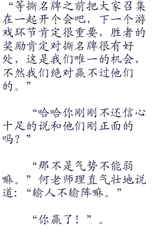 至于截哥,我想他一开始并不是内奸,然而那姐刚才一直拽着截哥衣服角的动作应该就是收复他的前提,你们可能没注意到,那姐前五分钟都是拽着截哥的,以后就没有拽着他了,第二把更是没和他在一起,这样的举动难道不能引人怀疑?”