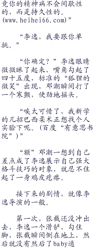 “并不然。”李逸淡定地说道:“你这又是一个假设性的问题了,未发生的事情谁有可以猜到呢?很有可能等会儿凯哥拉肚子、宸哥腿抽筋了、潮哥间歇性精神病又犯了,那就只剩下我和baby对付他们了。”