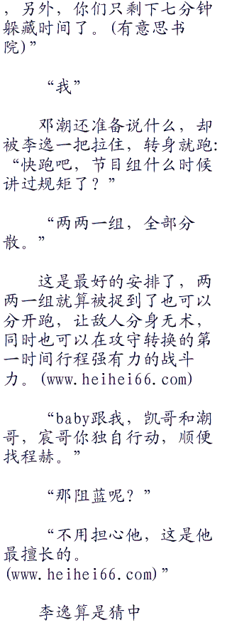 在跑男嚣张的笑声中,只听到执行导演,说道:“因为兄弟团获胜,所以他们获得率先躲藏的机会,从现在开始计时,你们有十分钟的时间把自己藏起来。”