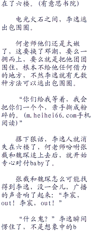 然而,最终还是晚了,李逸冲出电梯的时候,何老师他们已经赶到,瞬间围住了李逸和baby。