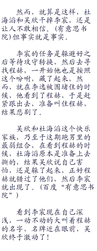 李逸正准备继续说两句话的时候,李唯嘉突然大叫道:“别跟他废话,他跟baby,一个也跑不了。”说完整个人就扑了上来。