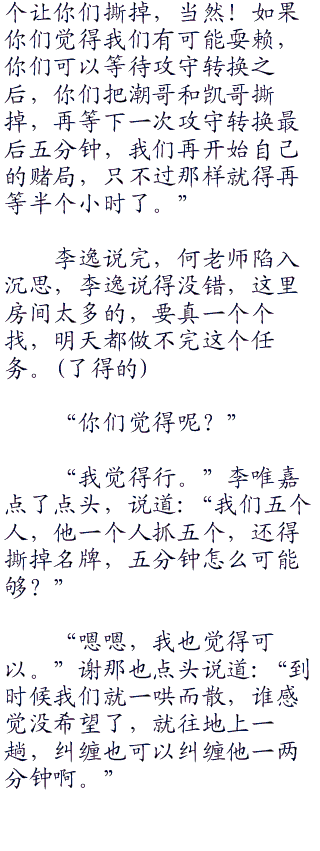 不得不承认李逸说的是现实,这里六层楼,接近两百个房间,地形复杂,躲藏的人随便找个角落一猫,你找破脑袋都找不到。王阻蓝就是一个很明显的例子。
