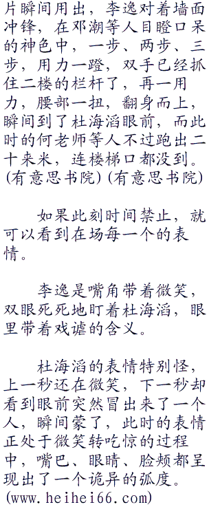 “你就站在这里。”何老师说道:“你站在这里,李逸干掉两个人之后肯定要通过你往另外一边跑,你就扑上去,压住他,给我们拖延时间,如果他不通过你,而是选择直接返身下楼的话,那就更简单了,你可以保留住小命,我们还是胜利。”