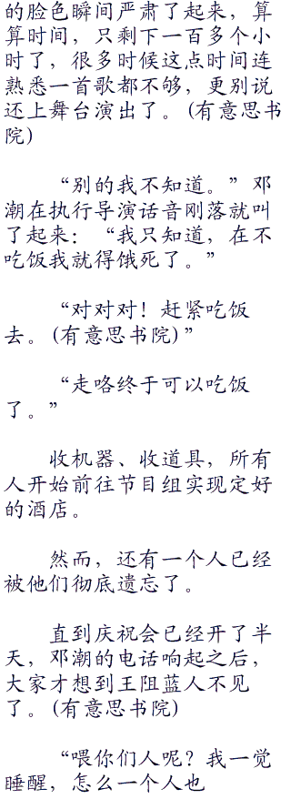 见双方接受了任务,执行导演站了出来,说道:“现在是0年十二月二号,演唱会的举办时间是在十二月七号的晚上七点半,演唱会最后一次合练的时间是七号的上午八点半,也就是说你们必须要在七号早上八点半之前把伴奏送到,并且参加合练。”