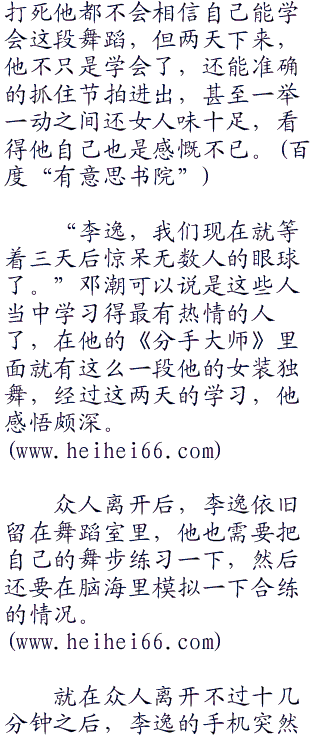 李逸给她设计的动作难度是仅次于自己的,而且可以把她的身材显露无疑,baby本身是有一定舞蹈功底的,但李逸看了下,就是跟赵俪颖一样的初级舞蹈,仅限于知道舞蹈是什么东西,要想跳好李逸设计的舞蹈,那还是有些困难的。