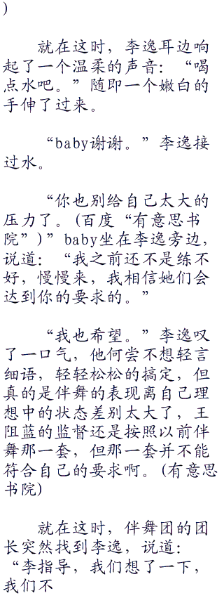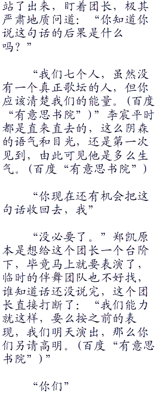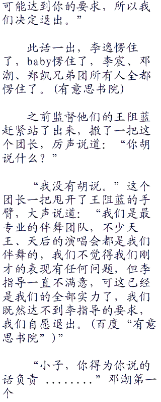 也难怪李逸这么生气,这已经是合练的第二天了,明天一大早就要正式排练了,但看看这些伴舞,走错拍子、走错位置、表情不认真、舞步敷衍了事,简直是业余到不能再业余了。