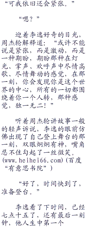 李逸在后台偷偷的瞄了一眼,心脏就开始了剧烈的跳动。