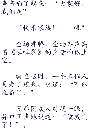 距离演唱会开始还有半个小时了,大部分观众已经进场,舞台上灯火通明,无数工作人员进进出出的还在紧张的进行着最后的调试。