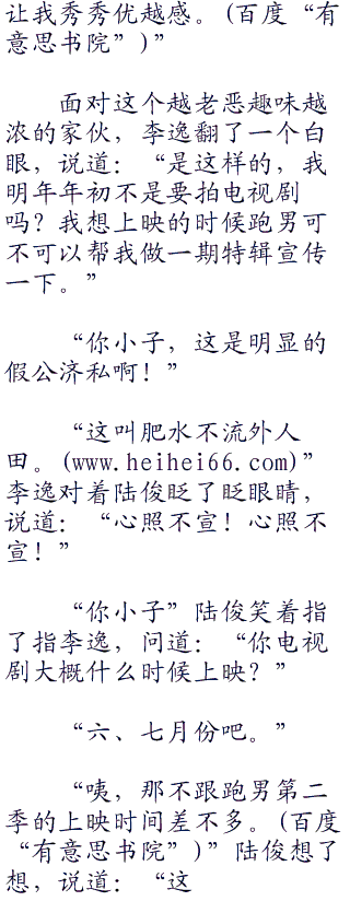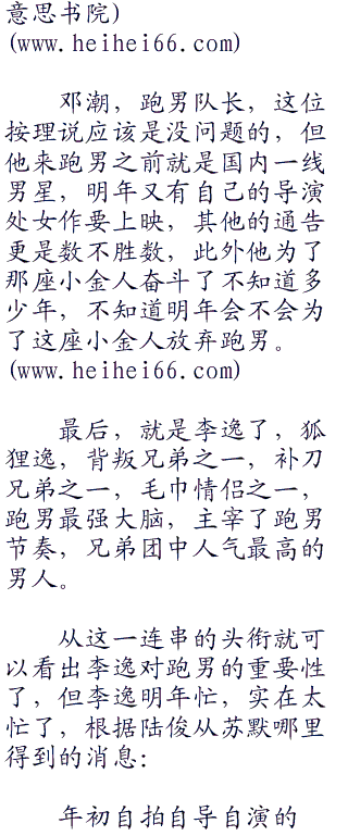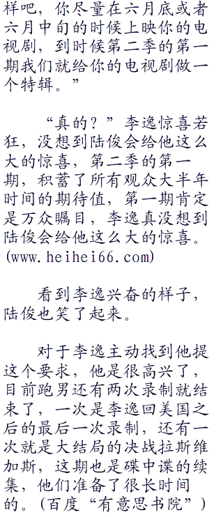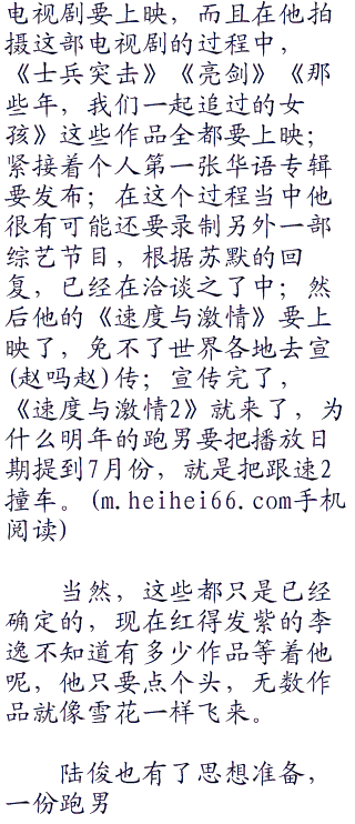 “李逸,因为电视台考虑到你拍摄《速度与激情》得到一月中旬甚至是一月底才结束,所以跑男嘉年华可能会在新春晚会,而不是跨年晚会,你要做好没办法回家过新年的准备。”