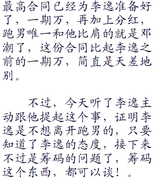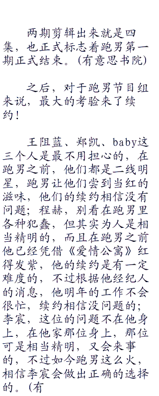 “你小子,今天的表现可真精彩,台长刚才已经跟我打电话了,跑男嘉年华的事情十之**了。”