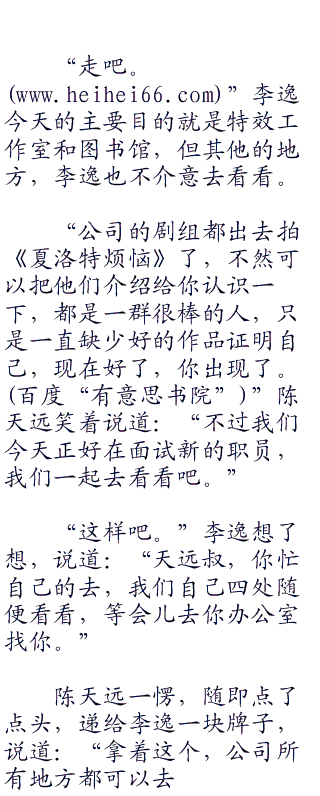 “我相信你。”陈天远笑了笑,说道:“好了,我带你们到公司四处去看看吧,公司虽然外表不起眼,但里面可是有不少好东西。”