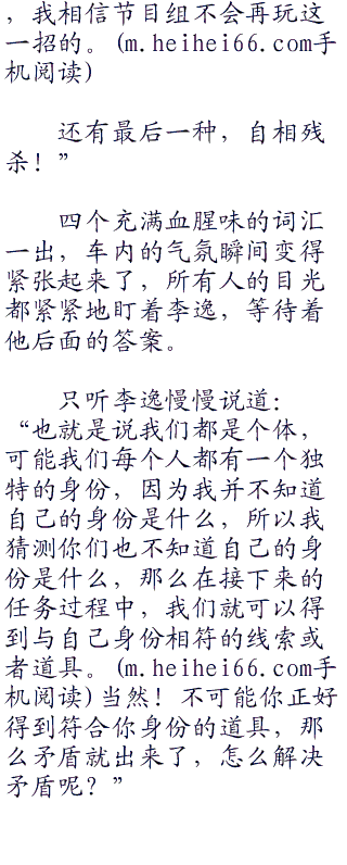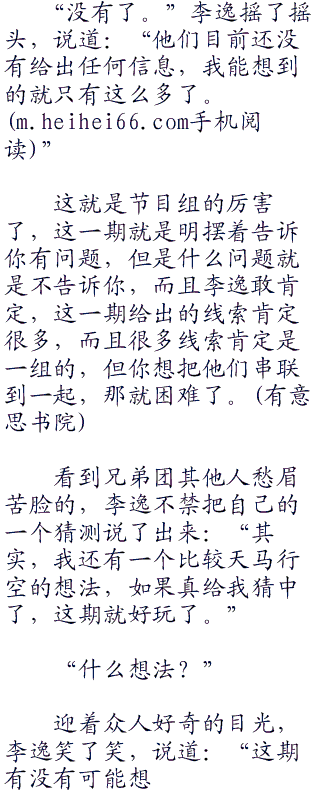“对!没有嘉宾。”这一说破,众人恍然大悟,与此同时,李逸的声音响了起来:“没有嘉宾只意味着三种情况: