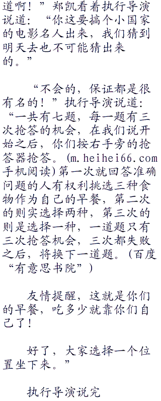 邓潮拿着任务卡,念了出来:“早餐大作战:根本节目组给出的