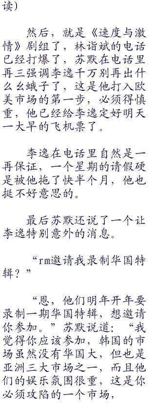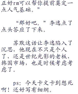 “额”李宸没话说了,跑男撕名牌环节里,对于王阻蓝的记忆都在被金钟国提起来、被李逸提起来、被李宸提起来、被好吧,不说了,越说越觉得悲催了。
